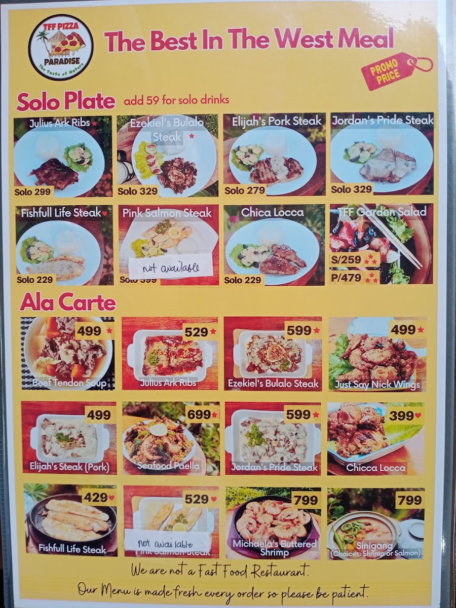 Paradise FarmFresh (formerly TFF Pizza Paradise) Menu